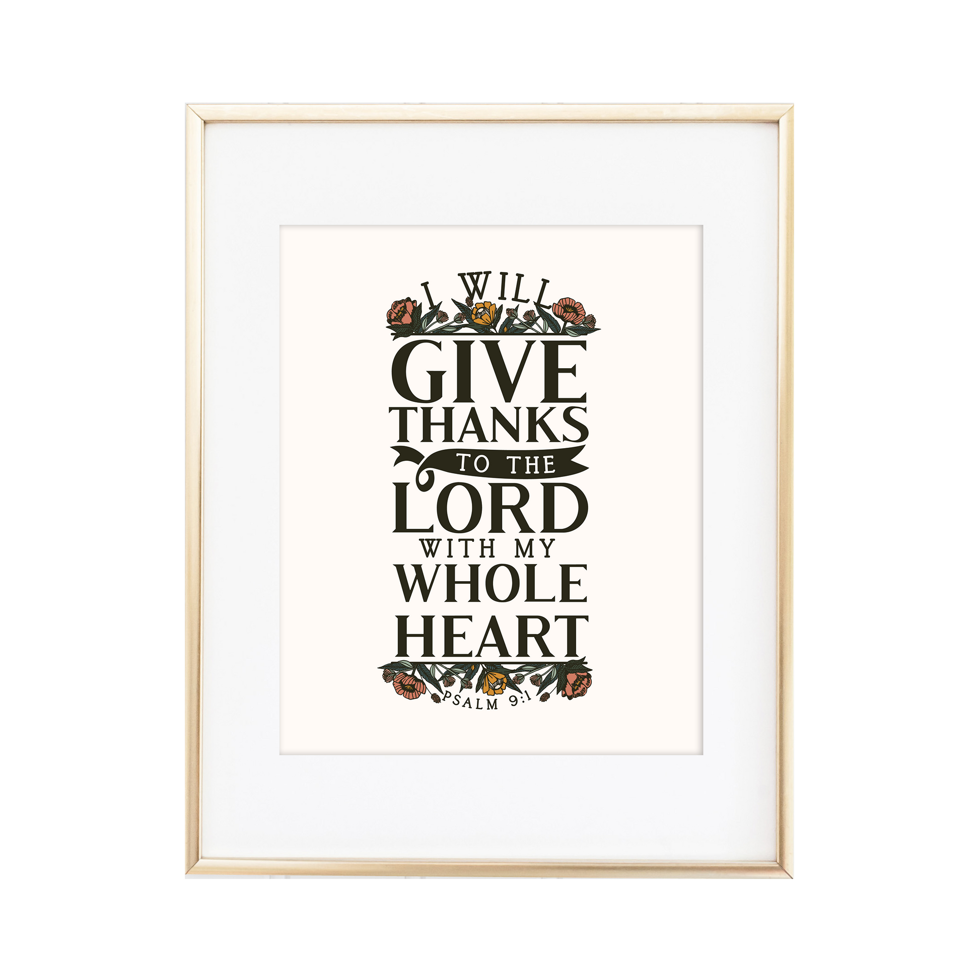 "I will give thanks to the LORD with my whole heart" PSALM 9:1