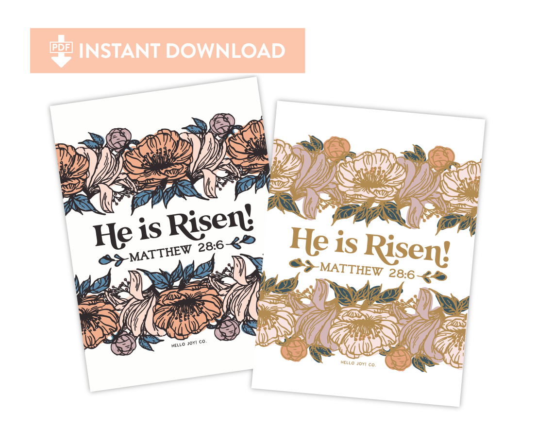 The PDF file you will download is designed as an 5 x 7 design with 1/4” bleed with crop marks within an 8.5 x 11 inch file @ 300 dpi. There are 2 color option in this download. The intended use of the file is that you print the artwork on your printer and enjoy the print yourself and/or gift additional prints as you like, but not exceeding three prints (unless you have written consent from Hello Joy! Co.). You may not use the artwork in any other way than it’s original intent. For example, you may not forward the file, redistribute and/or sell the print, or use the artwork to create canvases or posters. You may not separate the artwork and use it as part of an invitation or any other piece, printed or digital. We greatly appreciate your compliance!